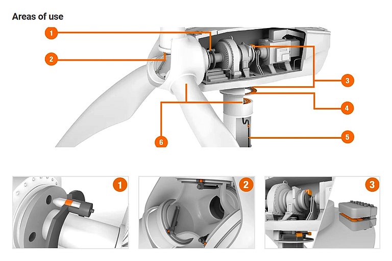 de exemplu in turnuri, sisteme de azimut si mecanismele de reglare a palelor rotorului.