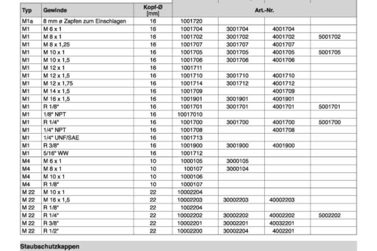 Medien: Luft, Wasser, Heißwasser, Öl, Fett, AdBlue, Diesel, Methangas; elektrische Kabel