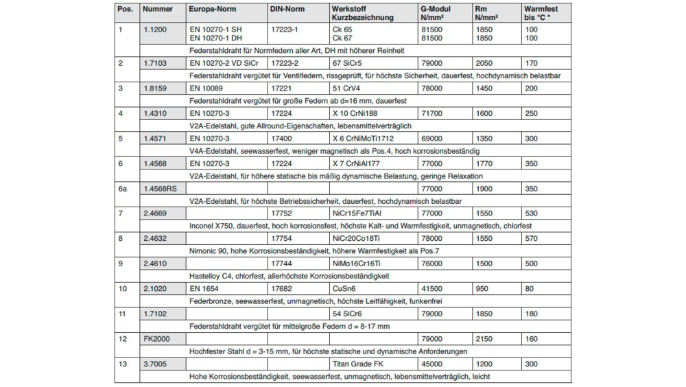 Für die Auswahl des richtigen Werkstoffes ist es wichtig zu beachten mit welchen Medien eine Feder in Berührung kommt.