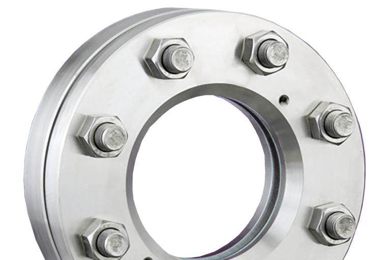 Eine Schauglasarmatur besteht aus flachen Flanschen, komplettiert mit jeweils einer zwischen Dichtungen eingelegten und fest verschraubten Schauglasplatte.