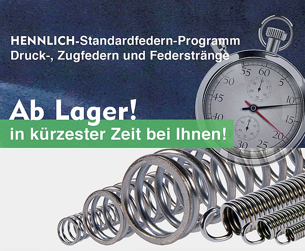 Profitieren Sie von unserem umfangreichen Lager an Standardfedern. Über 300.000 Federn können kurzfristig geliefert werden und sind am Tag nach Ihrer Bestellung bei Ihnen. Keine Mindestabnahme!