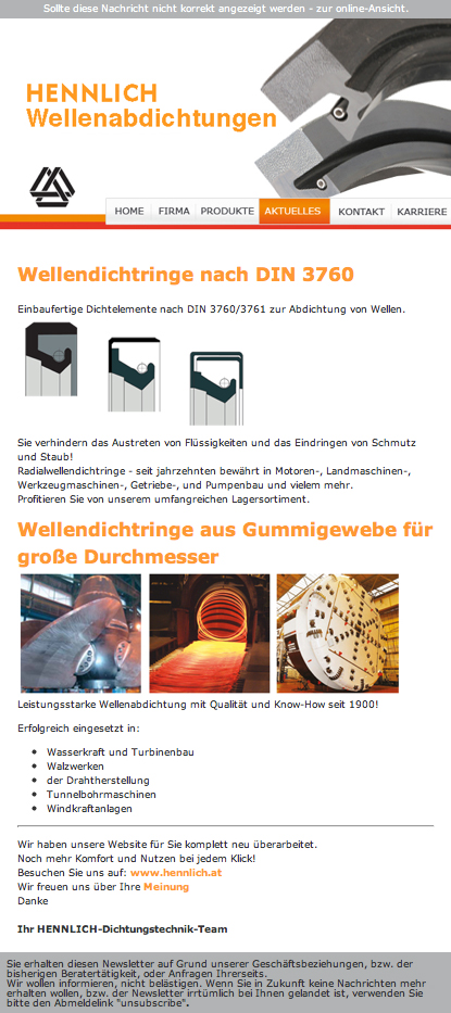 HENNLICH bietet einbaufertige Wellendichtringe nach DIN 3760/3761