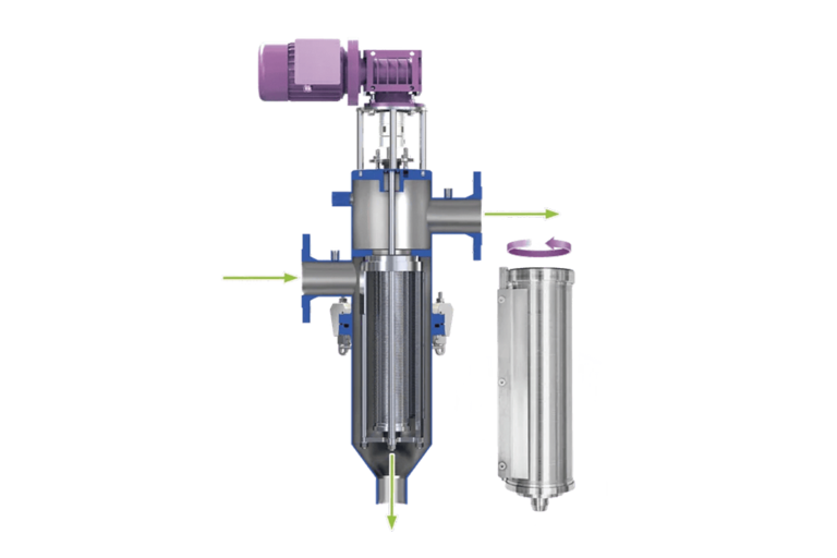 Самопочистващ се автоматичен филтър за високо съдържание на твърди частици във флуида. Филтрацията се осъществява през филтърния елемент отвън навътре, като твърдите частици се натрупват отвън. Системата е подходяща и за течности с висок вискозитет и за високи концентрации на твърди частици на входа.