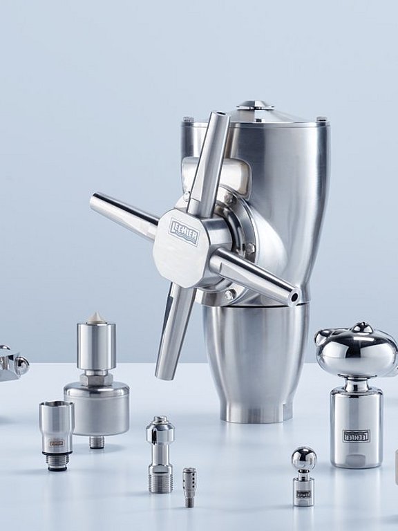 Дюзите за измиване на резервоари осигуряват вътрешно почистване на съдове с диаметър до 24 m. Статичните миещи глави консумират значително повече флуид от ротационните за сметка на по-изгодната си цена и здравината си, като са подходящи основно в задачи за изплакване. Въртящите се измивни глави осигуряват повтаряеми движещи се струи, които отмиват замърсяванията. Задвижването им става само от налягането на преминаващия флуид, изключение прави само висконапорната серия. Оптимизираната им конструкция позволява работа с ниски налягания, като още при обичайното водопроводно налягане около 2÷5 bar струята вече е стабилна и равномерна.