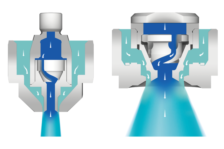 Двукомпонентните дюзи на германския производител Lechler намират широко приложение в DeNOx системите за очистване на газове от азотни окиси. Предимството на тази конструкция, която работи с течност и въздух, е възможността да се контролира фино размера на капката и дебита на течността.