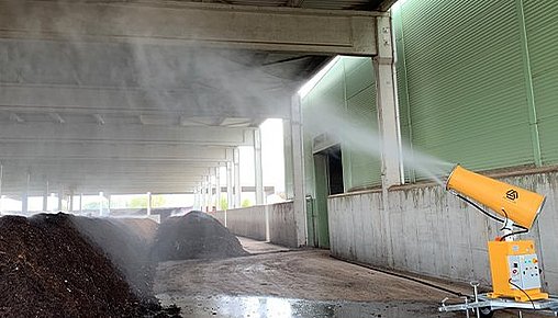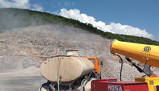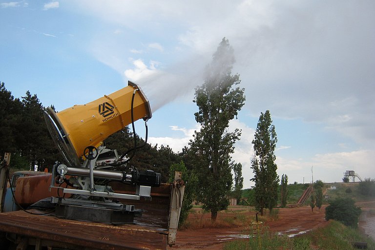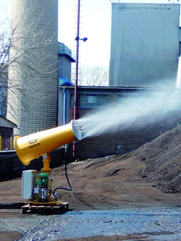 Оръдията използват високонапорни дюзи, които превръщат водата в много фини капчици, създавайки мъгла, която прилепва към праховите частици и ги сваля на земята, като по този начин намалява замърсяването.