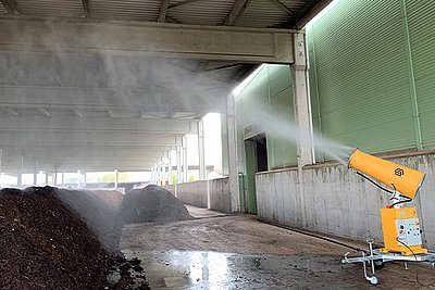 Оръдие за водна мъгла за омокряне на дървесни отпадъци