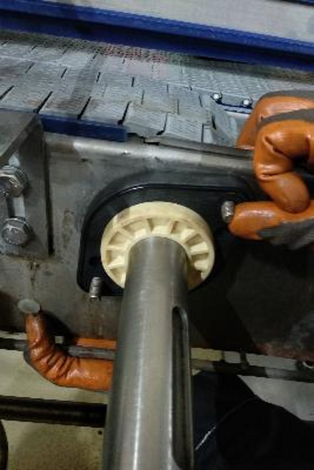 След 12 месеца експлоатация, транспортната лента работи безпроблемно. Дезинфекциращите процеси с препарат и постоянният контакт с течности не влияят на работата на подменените полимерни лагери. Не е нужно отдел „Поддръжка“ да следи за смазването на възлите. Компанията ще спести от допълнителни разходи за лубрикант.