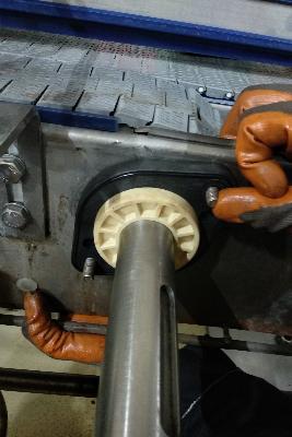 Конвенционалните неръждаеми сачмени лагери UCF-208, монтирани на транспортната лента, по която се придвижват бутилките, не издържат на агресивния химически препарат за дезинфекция P3-Topax и се налага честа подмяна. Спирането на целия непрекъснат производствен процес води до финансови загуби на компанията и допълнителна работа на отдел „Поддръжка“. Нашият екип трябваше да предостави решение, което да е работещо и функционално в конкретната работна среда – агресивен препарат за дезинфекция и постоянен контакт с течности.