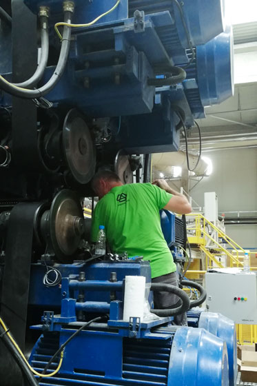 Клиентът ни потърси за решение, което да предотврати честите откази на лагерите в шлайфмашините, с които работи. На шлайф линията има общо 3 шлайфмашини, последователно обработващи дървените плоскости посредством абразивни ленти, които се опъват и завъртат с помощта на валове. Налични са много лагери към валовете, които работят в запрашена среда под интензивен товар. Всички лагери се смазват изцяло ръчно, като част от тях са на труднодостъпни места и неудобни за обслужване. Всичко това води до чести аварии и непредвидени и скъпи ремонти.